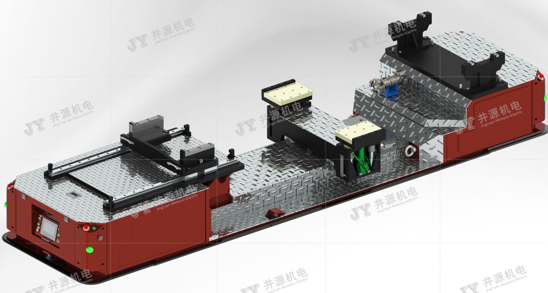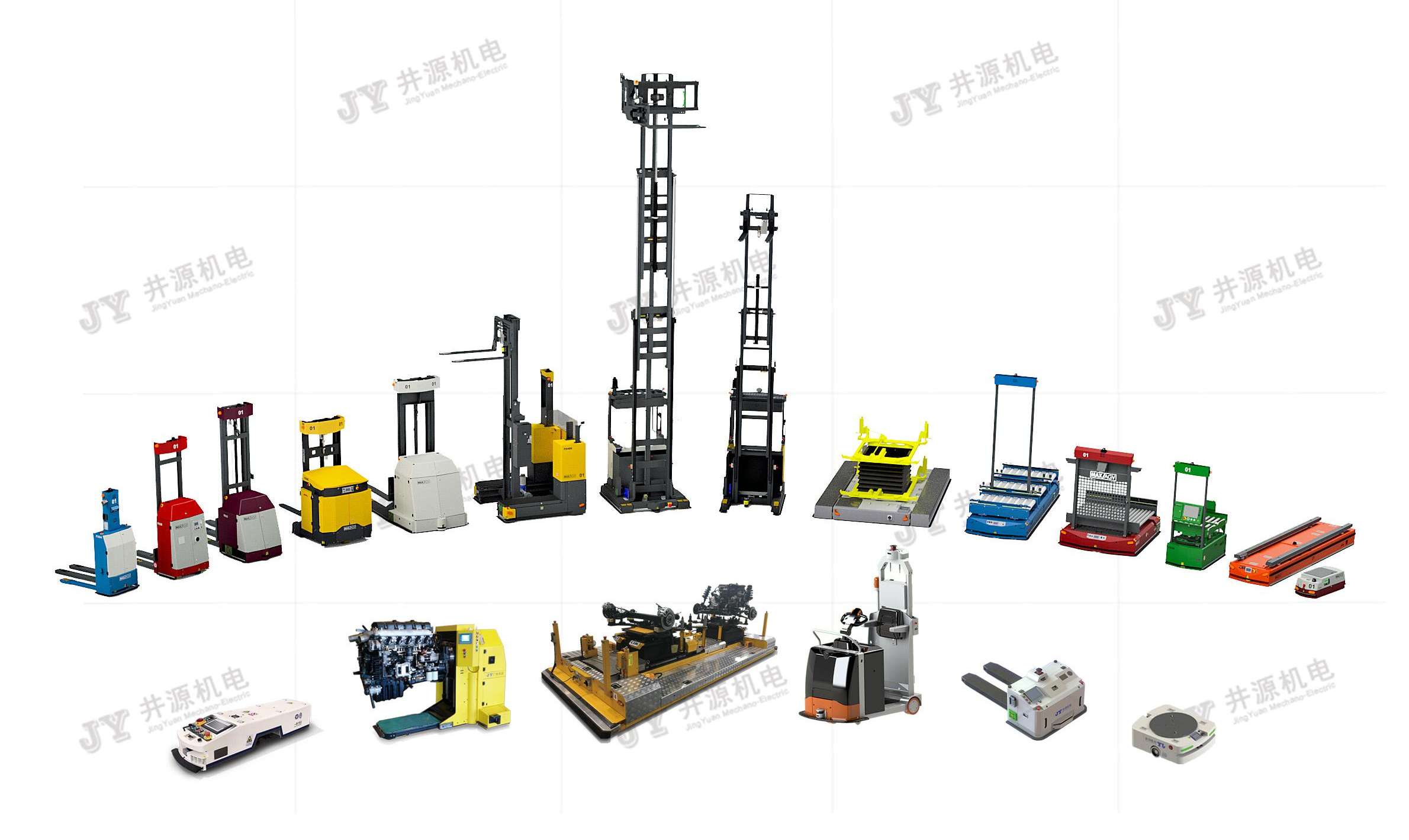 在某企業工廠環線改造項目上,井源機電選用了磁條及SLAM激光導引兩種AGV,為客戶實現了機體線-預裝線,預裝線-裝配線,裝配線-熱試線間的自動轉運工作,降低了企業的生產及人力成本,實現了車間的規范化、智能化、信息化管理。而在另外一個裝卸機主線裝配項目上,井源25噸重載裝配型AGV也進入到最后階段,安裝調試完成,便能投入生產作業了。