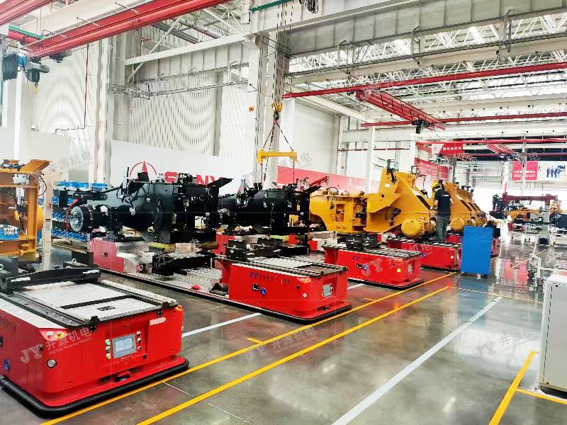 井源機電重載裝配型AGV負載30噸以下可定制,主要應用于室內工業物流搬運,主機工藝裝配及輔助裝配等場景。國內某裝載機企業,采用井源機電負載25噸重載裝配型AGV來完成裝載機裝配線的裝配工作,打造重工行業柔性化生產線,實現生產智能化識別、輸送、管理、信息交互等特點,降低勞動強度,大幅提高生產效率及生產質量。