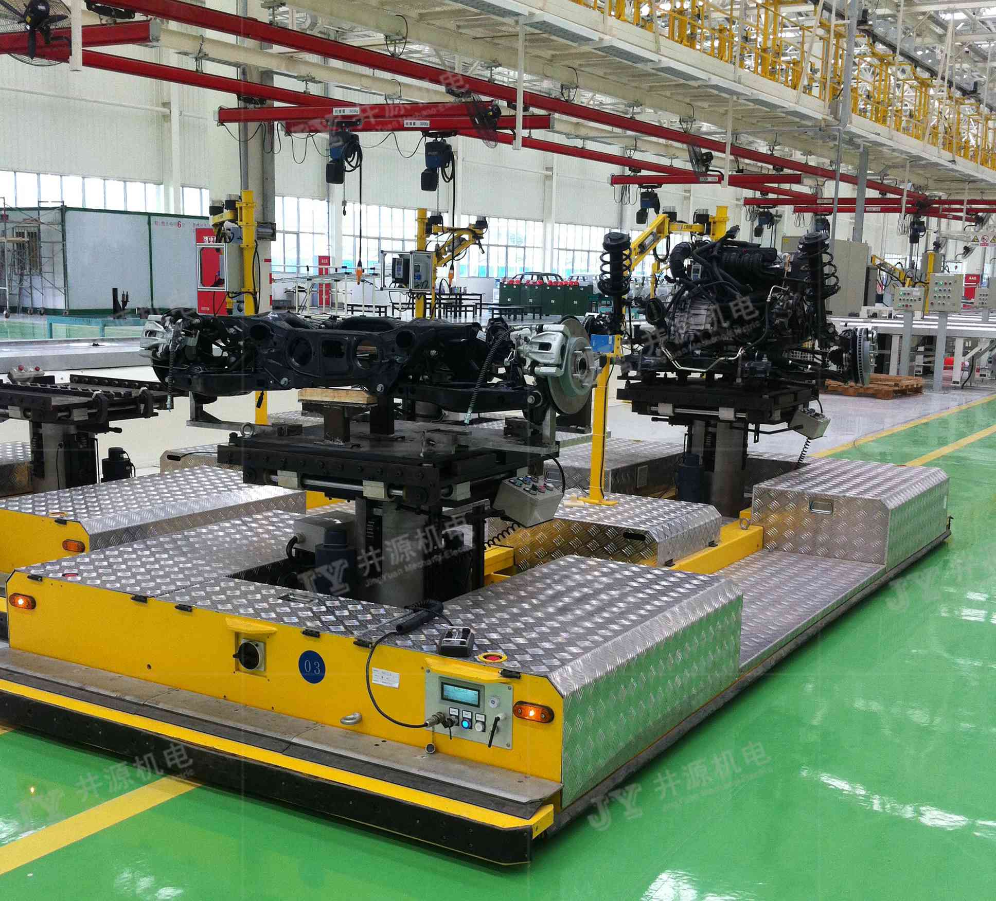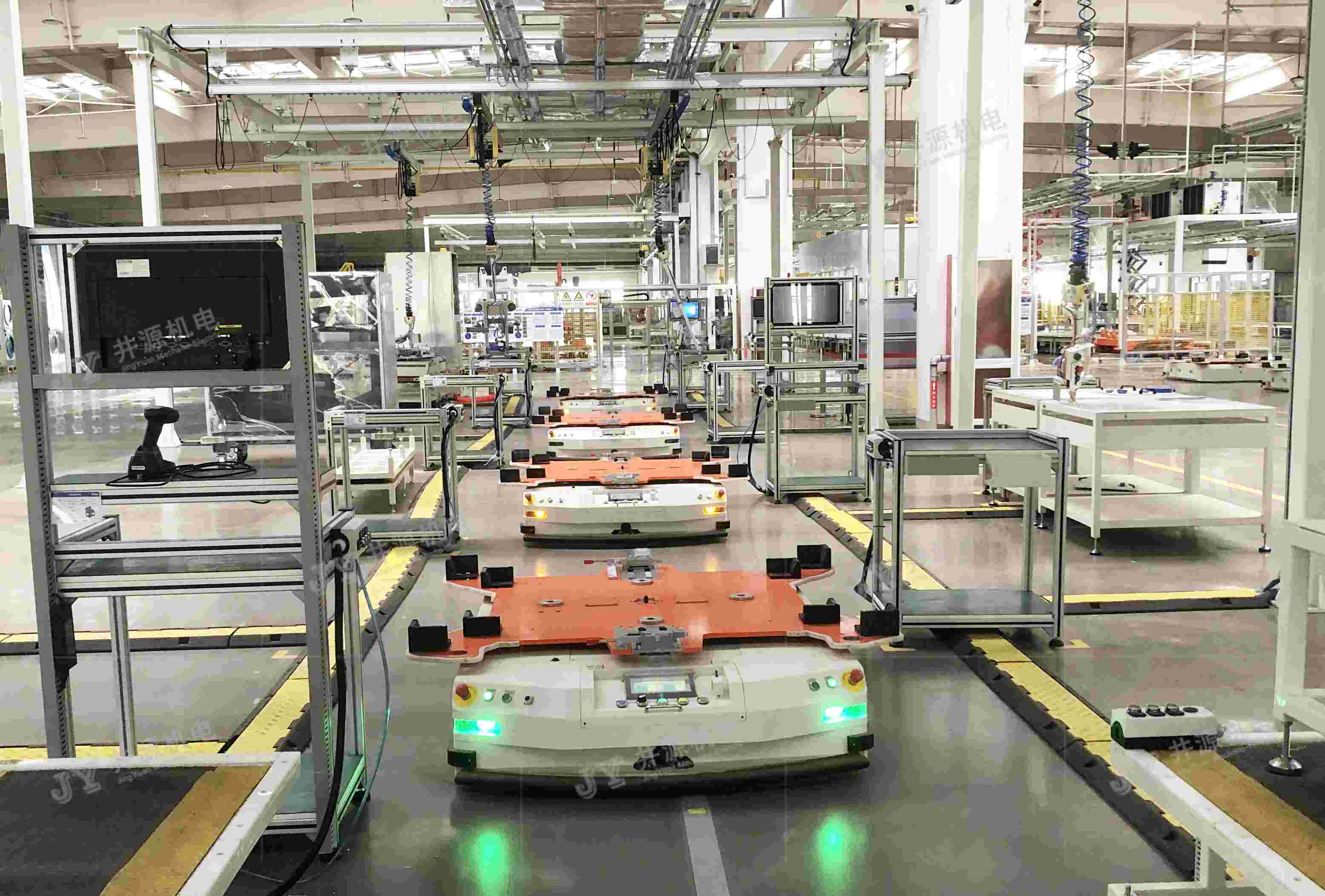 AGV小車作為重要的智能物流設備成員之一,不僅在倉儲物流領域內,是一個有效轉運物料的好幫手,在工藝生產裝配線上,也具備一定的職能優勢。今天,小編帶大家一起細數裝配線上所用到的幾款井源機電AGV。
