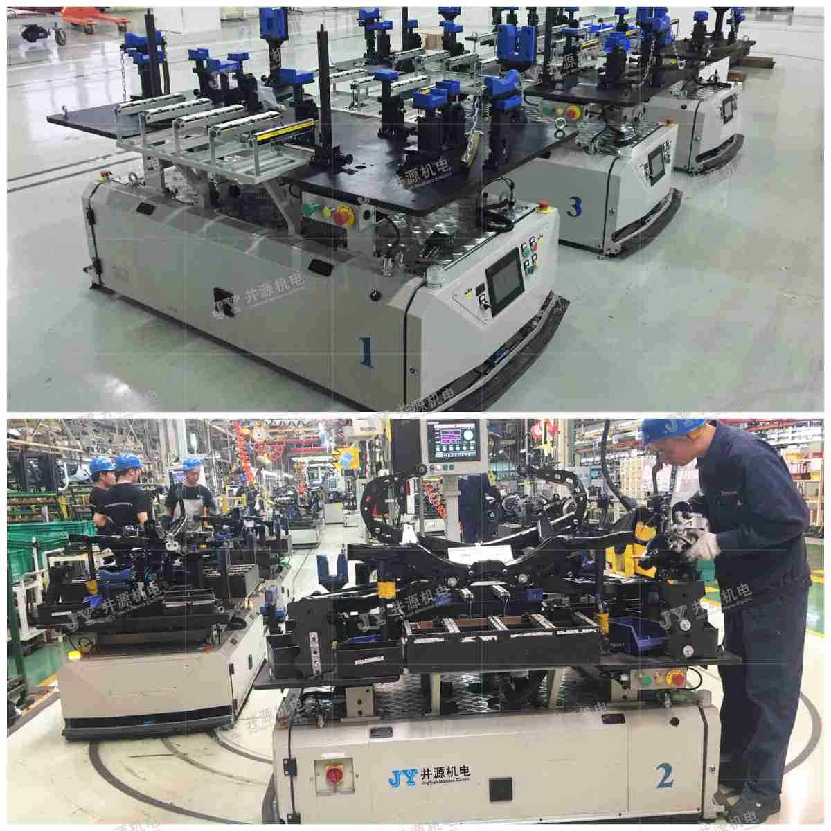 井源機電裝配型AGV具有自動對接、升降、旋轉的功能,自動匹配物料并牽引物料車隨行,是一款具備柔性化、信息化、智能化的裝配型AGV。常用于發動機、變速箱、缸體輸送等不同產品的裝配工作。支持磁帶導引、電磁導引、SLAM激光導引等多種模式。